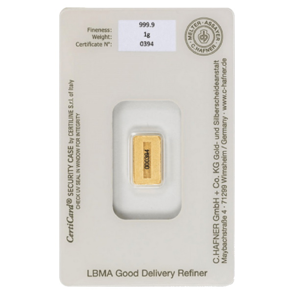 Sie möchten informiert werden, wenn 1 Gramm Goldbarren C.HAFNER unter einem bestimmten Preis erhältlich ist? Dann geben Sie bitte Ihren Wunschpreis an.