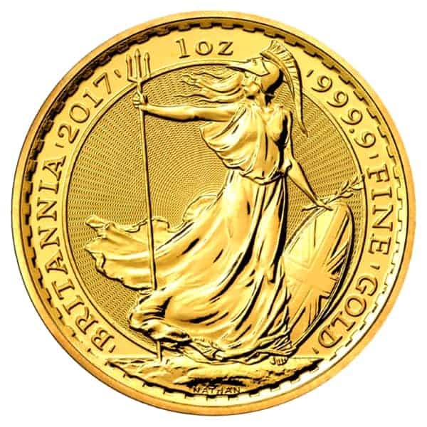 Die Abbildung zeigt als Produktbeispiel die 1 Unze Britannia Goldmünze 2017 der Royal Mint®